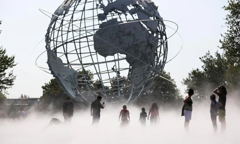 People cool off during a heatwave in the mist garden near the Unisphere in Flushing Meadows Corona Park, August 13th, 2021 | Global Times